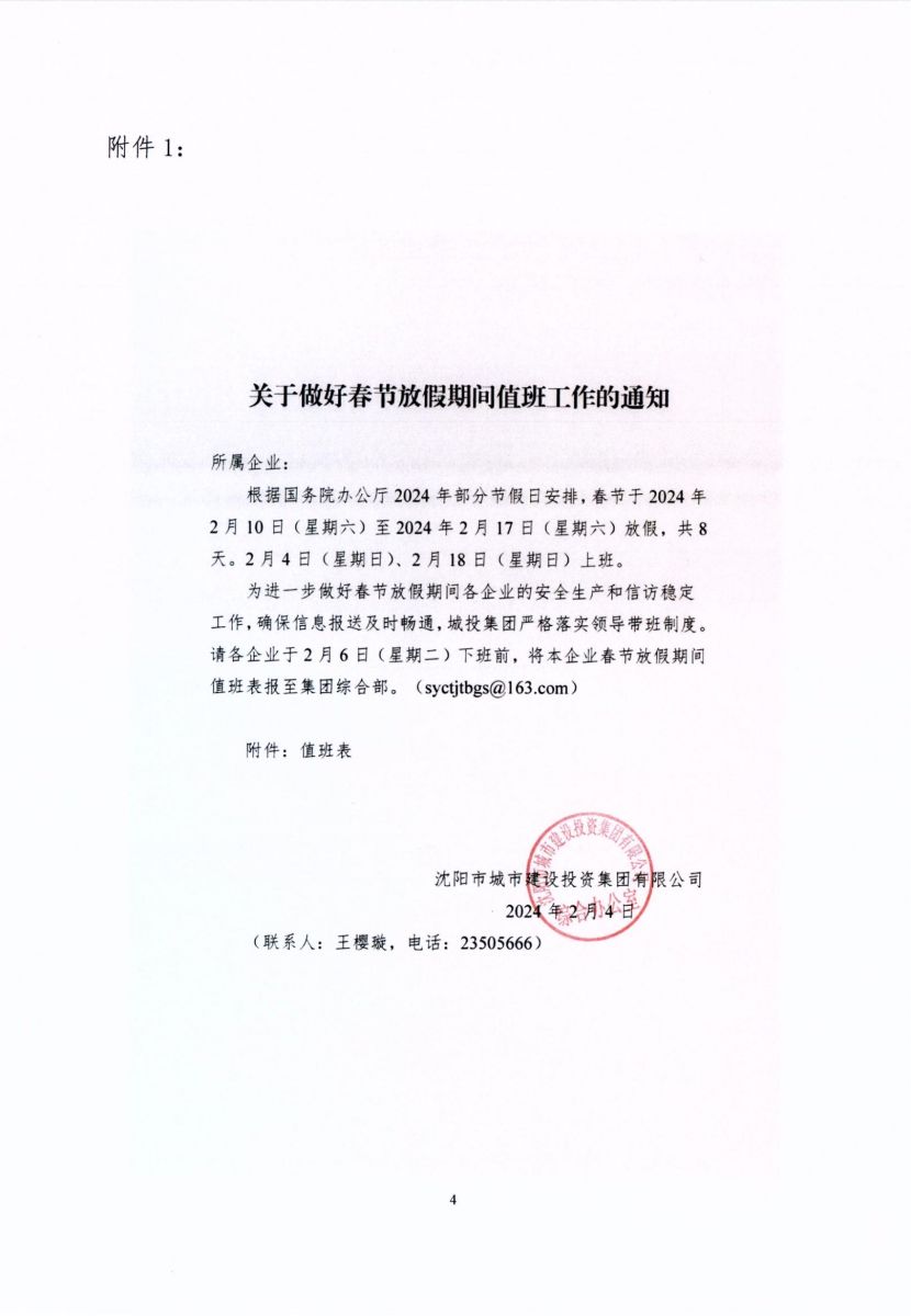 關(guān)于做好2024年清明節(jié)放假期間值班工作的通知
